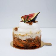 noix de cajou et raisins secs, au lait de coco avec chantilly végétale, décoré à la figue.