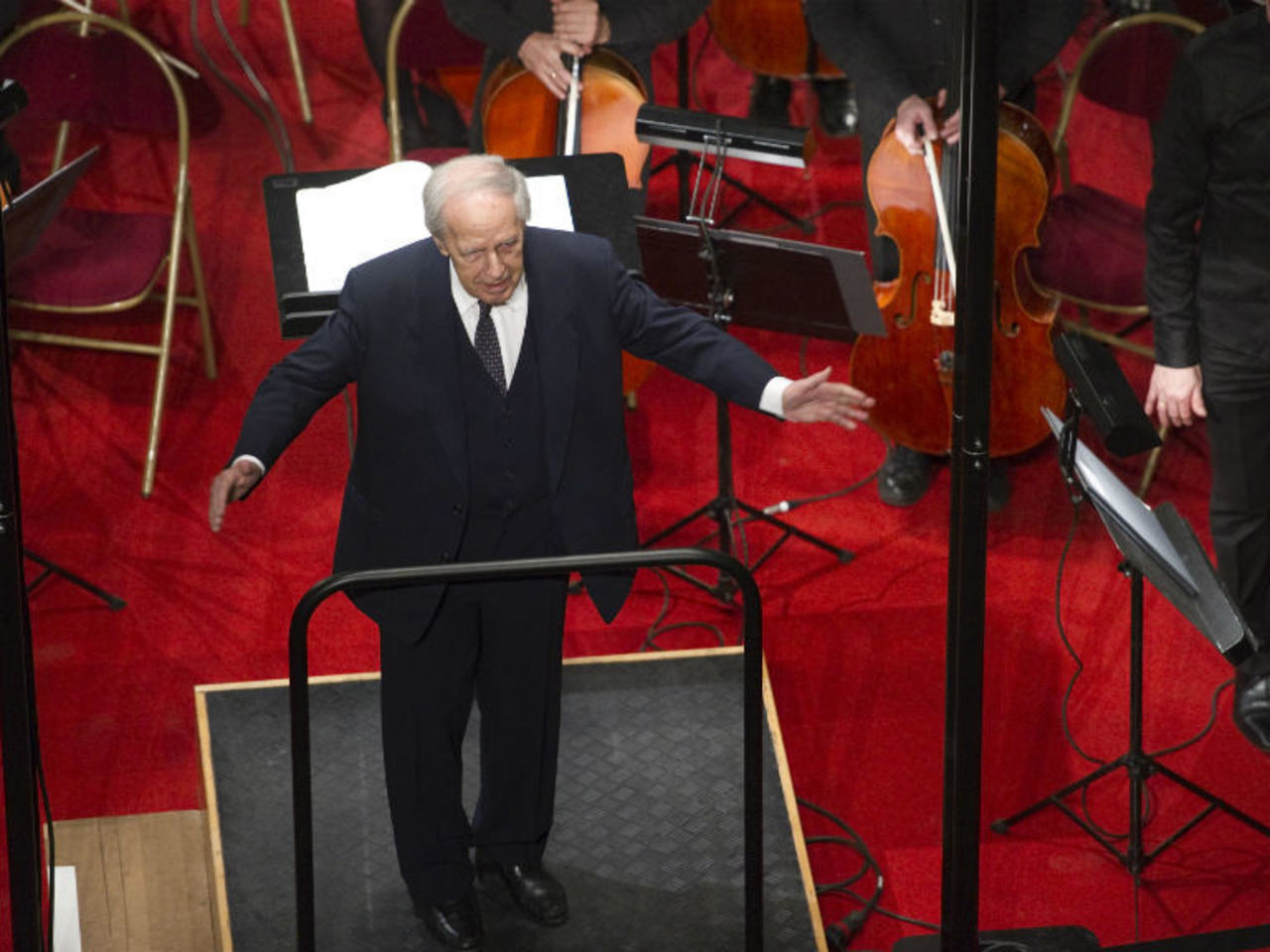 C’est le chef d’orchestre, c’est toujours lui qui fait tout. Pierre Boulez photographié.