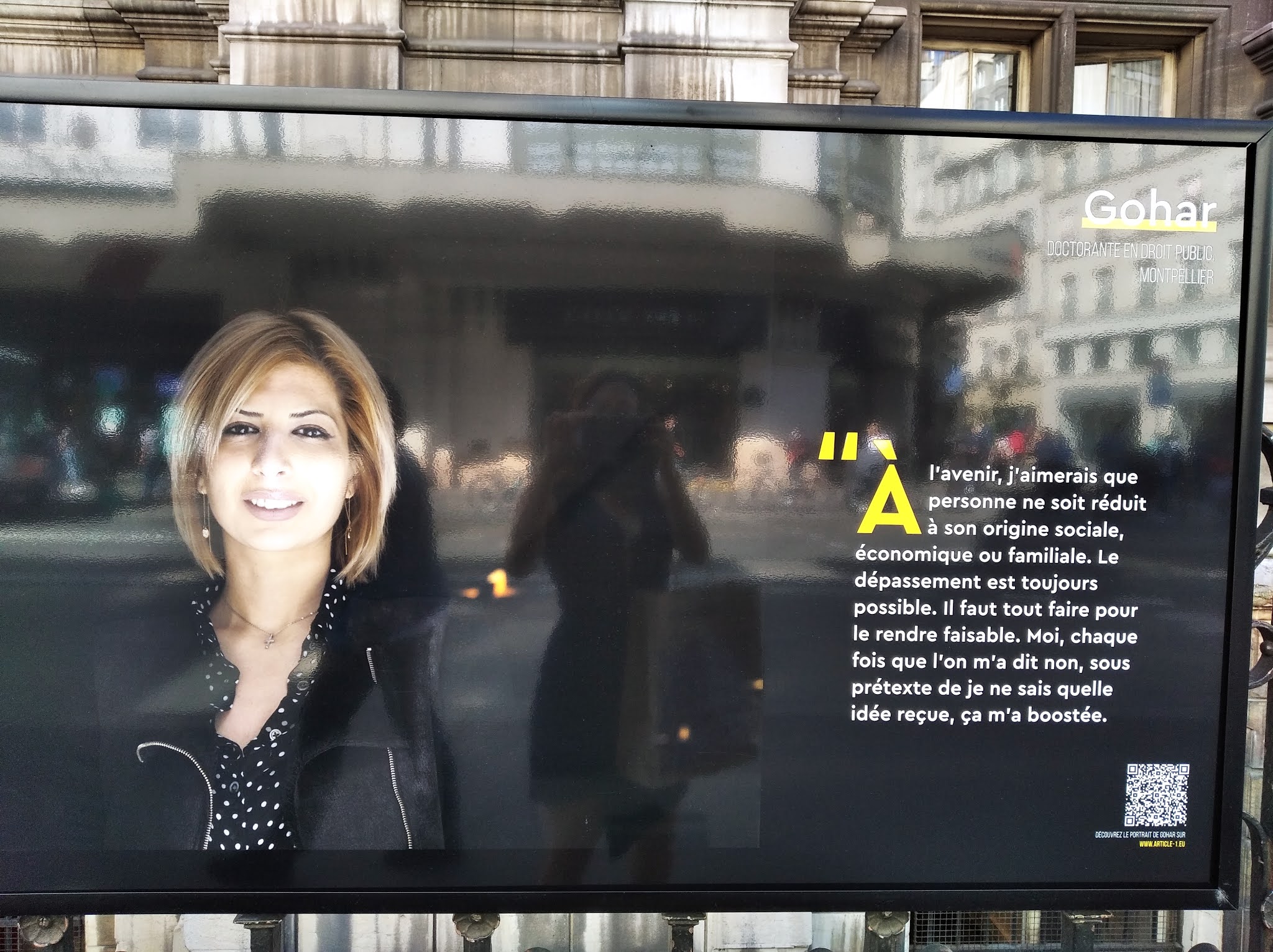 « À l’avenir, j’aimerai que personne ne soit réduit, à son origine sociale, économique ou familiale. Le dépassement est toujours possible. Il faut tout faire pour rendre possible. Moi chaque fois, que l’on m’a dit non, sous prétexte de je ne sais quelle idée reçue, ça m’a boostée ». Gohr Doctorante en droit public Montpellier