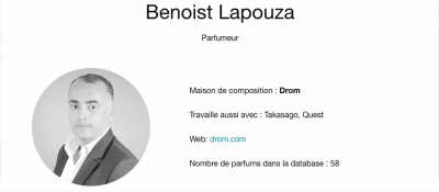 puis entre les mains du parfumeur Benoist Lapouza. Les parfums sont rarement, voire jamais développés par les créateurs seuls.