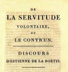 Pour La Boétie la domination ne se comprend que par le volontariat des peuples: » La seule liberté, les hommes ne la désirent point, pour une raison….S’ils la désiraient, ils en auraient prit possession, refuser ce bel acquit seulement par qu’il est trop aisé.