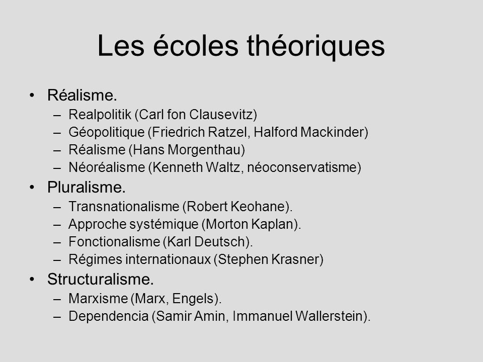 Historiquement, de nombreux experts de premier plan en relations internationales de l’école réalistes ont tenté de compléter leurs concepts avec certains éléments d’approches libérales (néolibérales) au fil du temps.